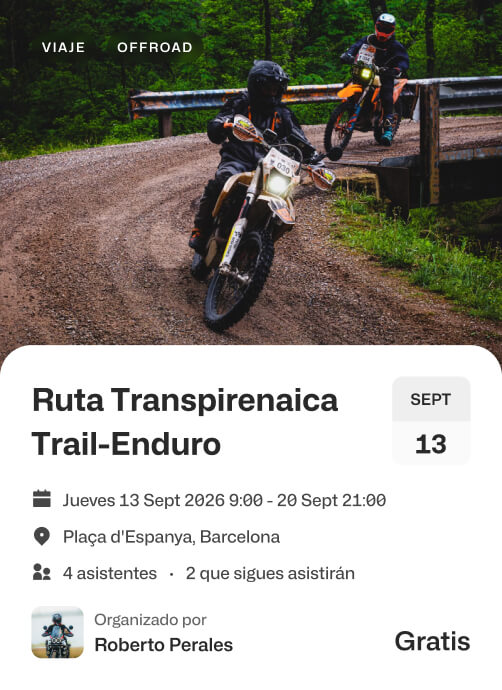 Filtra por tipo de evento, terreno, nivel o vehículo. Descubre experiencias hechas para ti.