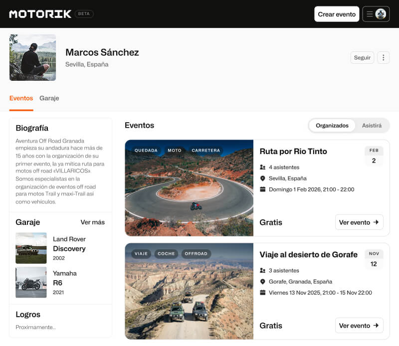 Motorik cambió completamente mi forma de organizar eventos. Antes tardaba semanas en coordinar una rodada, ahora lo hago en minutos. La comunidad que hemos creado es increíble.