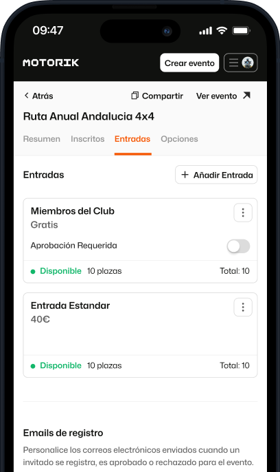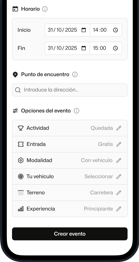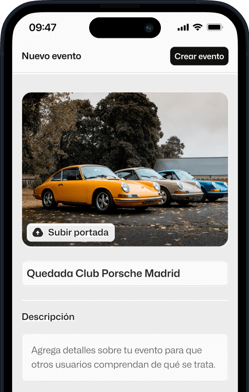Publica tantas rutas, quedadas o competiciones como quieras, en solo minutos y con una interfaz diseñada para el mundo del motor.